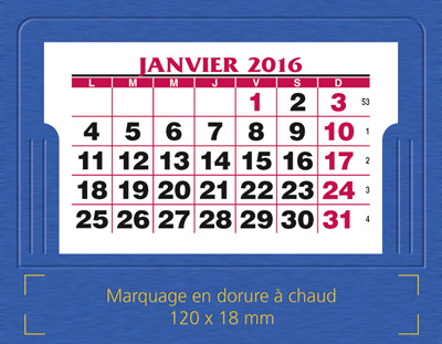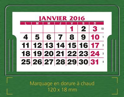 Un calendrier chevalet publicitaire classique. Pour redresser votre position sur le marché ou pour le garder, maintenez une bonne relation avec vos clients et vos partenaires. Pour cela, il vous suffit de marquer votre présence à travers un calendrier publicitaire. Ce dernier vous permet d'attirer beaucoup plus de clients et de les élargir, puisqu'il touche absolument tout le monde. Ainsi, vous ferez plus de profits avec les anciens et les nouveaux clients. N'hésitez pas à leur offrir ce calendrier chevalet publicitaire Ce calendrier chevalet publicitaire est très pratique car les dates sont mises en évidence, de manière à faciliter son usage. Sous forme de cadre photo, les semaines sont bien distinguées par la couleur rouge. Vous avez la possibilité de choisir entre trois couleurs : vert, bleu, rouge. Facile à manier, ce calendrier peut ètre installé partout sur les bureaux. Profitez d'une marquage en dorure à chaud pour insérer votre publicité. Tout le monde, du plus petit au plus âgé utilise un calendrier pour programmer son emploi du temps scolaire, professionnel et préparer à l'avance les prochaines vacances. En plus d'ètre pratique, un calendrier publicitaire peut servir de décoration étonnante. KelCom tient à vous offrir des produits de qualité à petit prix. N'attendez plus pour commander ce calendrier chevalet publicitaire.
