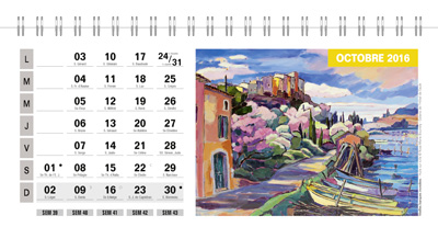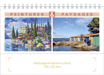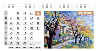 Un calendrier publicitaire à double face. Afin de satisfaire les besoins de vos clients, offrez-leur un calendrier mural que KelCom vous propose à un prix avantageux. Cela reste un bon moyen pour renouer le contact avec votre public, d'attirer de nouveaux clients et de fidéliser les habitués. Pour accompagner vos clients ainsi que tous vos collaborateurs durant cette nouvelle année, restez près d'eux à travers ce magnifique calendrier chevalet publicitaire de peintures. Ce calendrier chevalet publicitaire de peintures est pratique pour les bureaux. Pratique, sa double face permet aux usagers de disposer d'une vue sur les éphémérides devant et derrière leurs bureaux. Les photos représentent des peintures et des paysages magnifiques. Pour insérer votre publicité sur ce magnifique calendrier publicitaire, profitez d'un large espace de 165 x 25 mm. Vous pourrez ainsi vous présenter et annoncer vos activités au public. KelCom est à la recherche perpétuelle de nouveaux supports publicitaires qui puissent garantir le développement de votre activité. Tenant à notre réputation, nous favorisons la qualité au meilleur prix. Ainsi, nous travaillons avec une multitude de fournisseurs, de manière à varier les couleurs de nos produits. Pour obtenir ce calendrier chevalet publicitaire de peintures au meilleur prix, commandez dès maintenant.