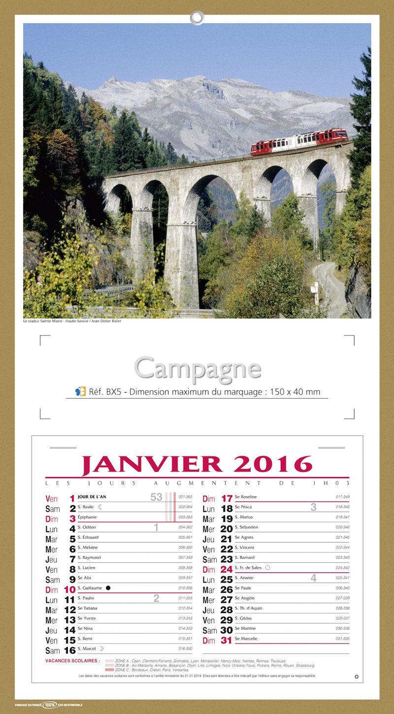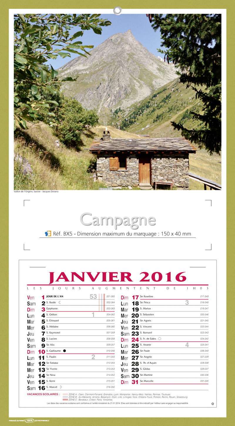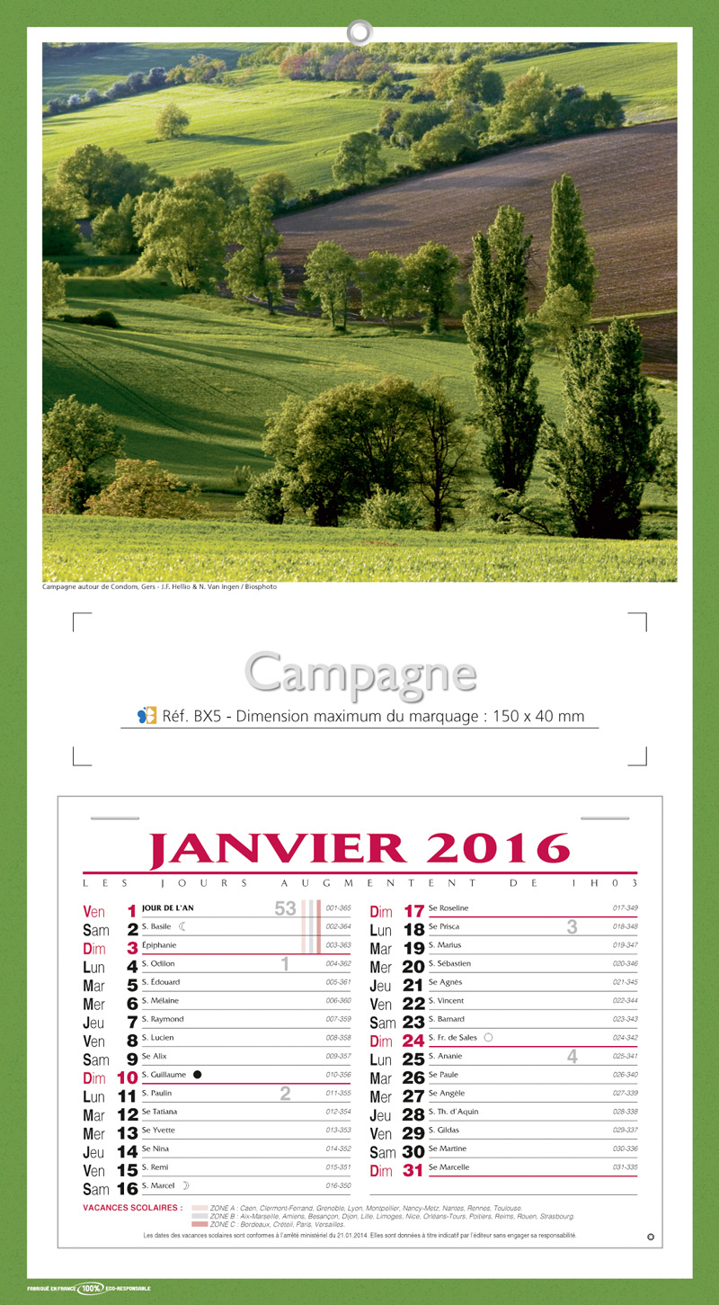 L'image d'une entreprise s'entretient, les clients également. C'est pourquoi Kelcom vous propose pour cette année, le Bloc mensuel publicitaire, A la campagne pour renforcer les liens entre votre clientèle et vous. Ces petits gestes d'attention pourront augmenter votre chiffre d'affaires car vos clients se sentiront aimés, ils n'hésiteront pas à vous recommander à d'autres consommateurs. Chaque page du Bloc mensuel publicitaire vous replonge dans le beau paysage de la campagne pour attiser en vos clients la nostalgie de cette vie paisible, loin des bruits des grands centres urbains. Il présente douze feuilles détachables comprenant chacun un mois avec les dates des fêtes et congés ainsi que les semaines numérotées. Vos clients et collaborateurs peuvent facilement établir leur programme, planifier leurs activités. De plus, vous disposez d'un espace de 150 x 40 mm pour vous faire connaitre du grand public. Présentez-y votre structure, vos différentes prestations, vos coordonnés et situation géographique. Contactez-nous si vous sentez le besoin de vous rapprocher un peu plus du grand public, nous vous aiderons à y arriver. Il vous suffit de passer vos commandes pour recevoir des supports publicitaires Kelcom. Nous vous garantissons le succès.