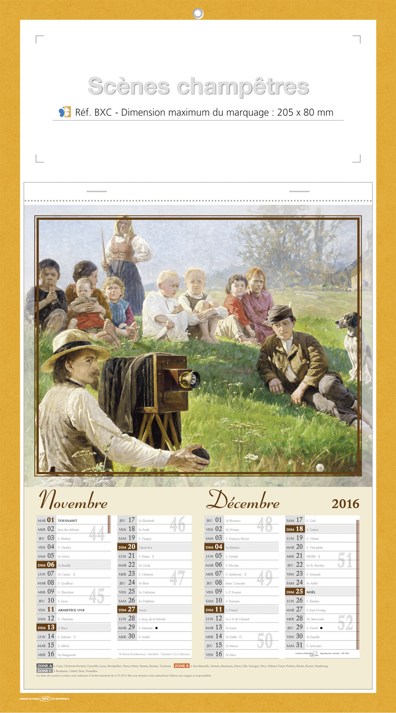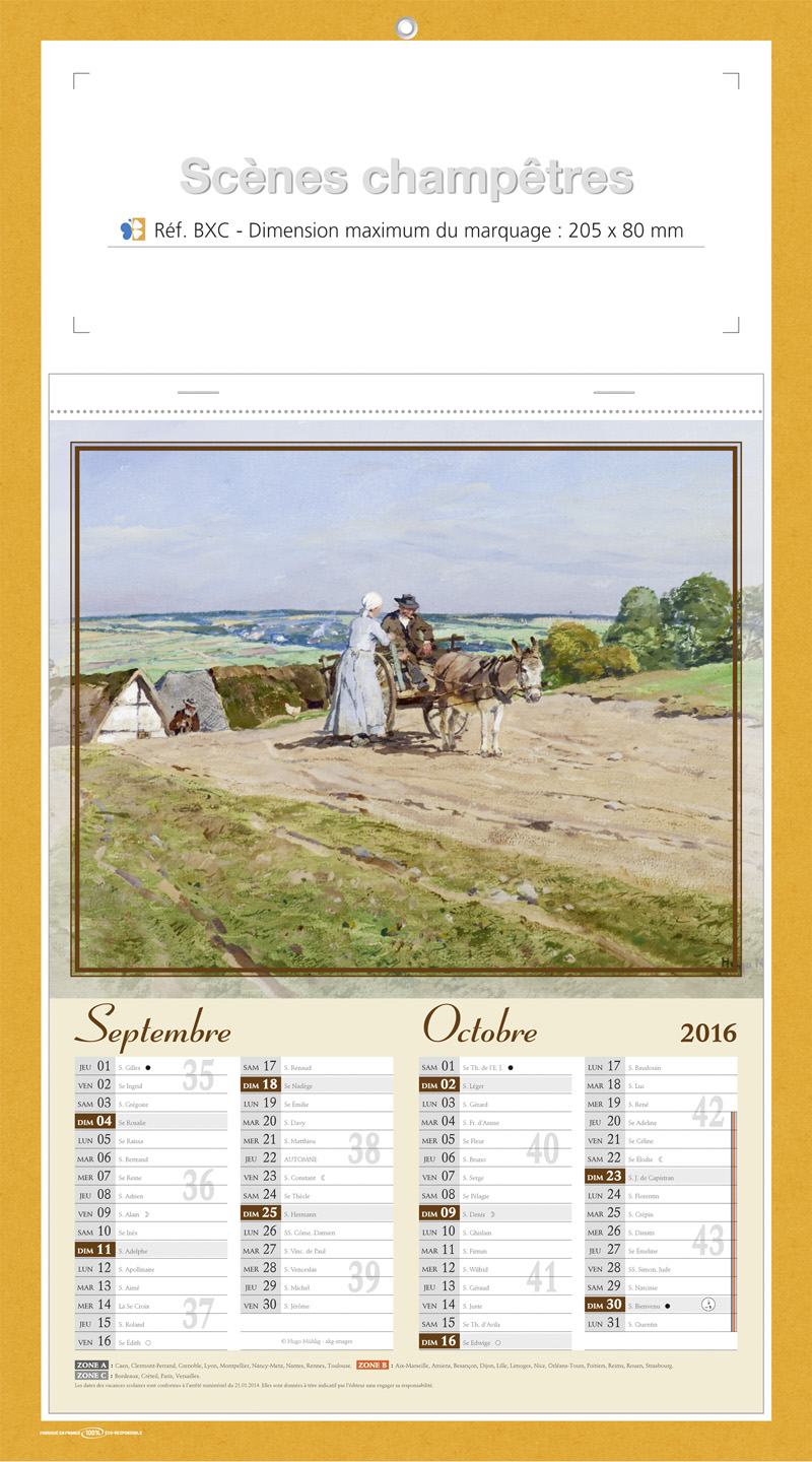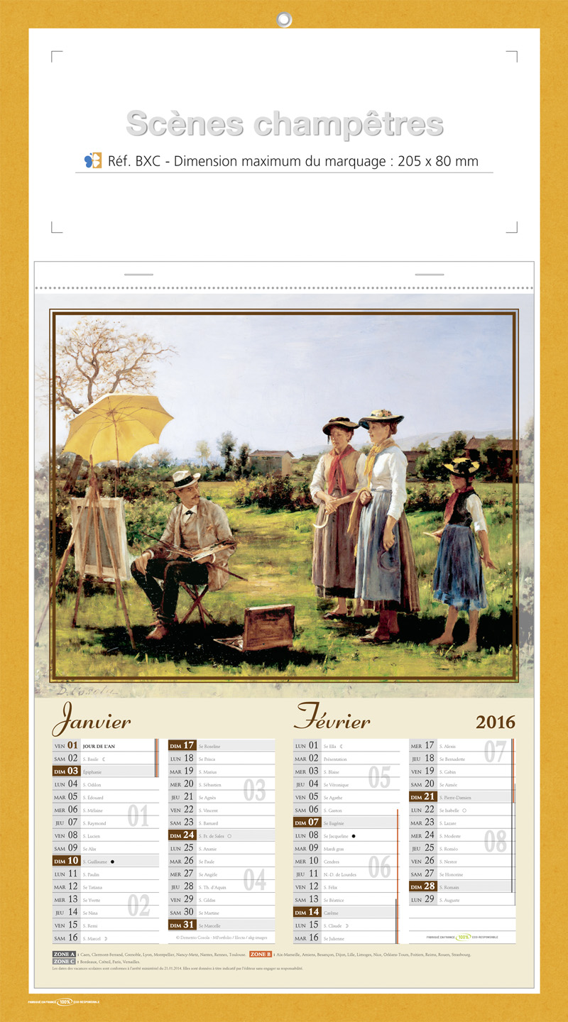 Maintenez votre position de leader sur le marché ou améliorez-la en posant des gestes sympathique à l'endroit de votre clientèle. Pour vous aider dans cette action, Kelcom met à votre disposition des Blocs illustrés publicitaires, Peintures Champêtres. Donnez-les à vos clients et collaborateurs pour étendre votre image dans divers horizons. Il vous aidera à booster votre chiffre d'affaires et assoire une structure solide qui dure dans le temps. Peintures Champêtre met en exergue la vie paisible de la campagne. On y voit de braves paysans qui s'adonnent avec beaucoup de simplicité et passion à leurs activités agricoles. Ce calendrier que nous vous proposons et un bimensuel qui aidera les utilisateurs à établir leurs programmes et à peaufiner leur agenda, mais aussi à ajouter un plus à la décoration de leur cadre de vie. Dans l'espace disponible pour vous, faites y votre publicité, faite vous connaitre du grand public en présentant vos différents produits et profitez-en pour donner vos coordonnés et votre situation géographique, vous faciliterez ainsi l'accès à votre structure. N'hésitez pas à nous contacter pour vos différentes publicités, nous sommes disposés à vous aider en vous fournissant des supports de qualité.
