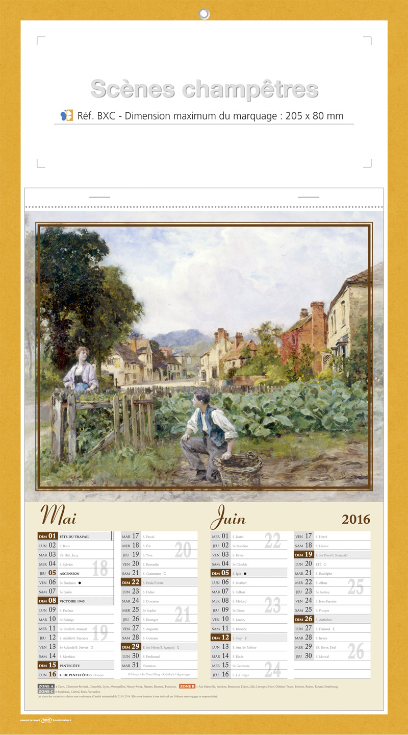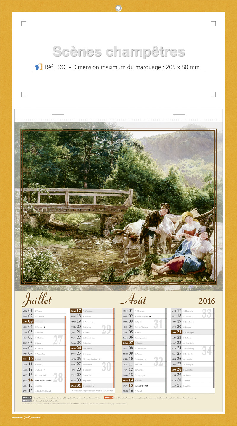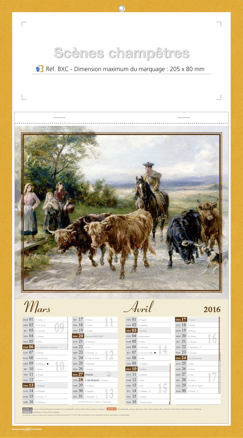 Maintenez votre position de leader sur le marché ou améliorez-la en posant des gestes sympathique à l'endroit de votre clientèle. Pour vous aider dans cette action, Kelcom met à votre disposition des Blocs illustrés publicitaires, Peintures Champêtres. Donnez-les à vos clients et collaborateurs pour étendre votre image dans divers horizons. Il vous aidera à booster votre chiffre d'affaires et assoire une structure solide qui dure dans le temps. Peintures Champêtre met en exergue la vie paisible de la campagne. On y voit de braves paysans qui s'adonnent avec beaucoup de simplicité et passion à leurs activités agricoles. Ce calendrier que nous vous proposons et un bimensuel qui aidera les utilisateurs à établir leurs programmes et à peaufiner leur agenda, mais aussi à ajouter un plus à la décoration de leur cadre de vie. Dans l'espace disponible pour vous, faites y votre publicité, faite vous connaitre du grand public en présentant vos différents produits et profitez-en pour donner vos coordonnés et votre situation géographique, vous faciliterez ainsi l'accès à votre structure. N'hésitez pas à nous contacter pour vos différentes publicités, nous sommes disposés à vous aider en vous fournissant des supports de qualité.