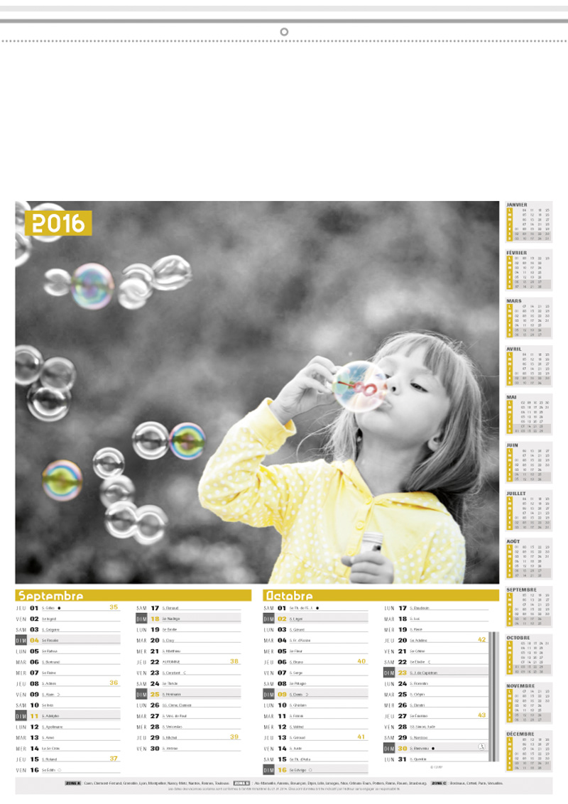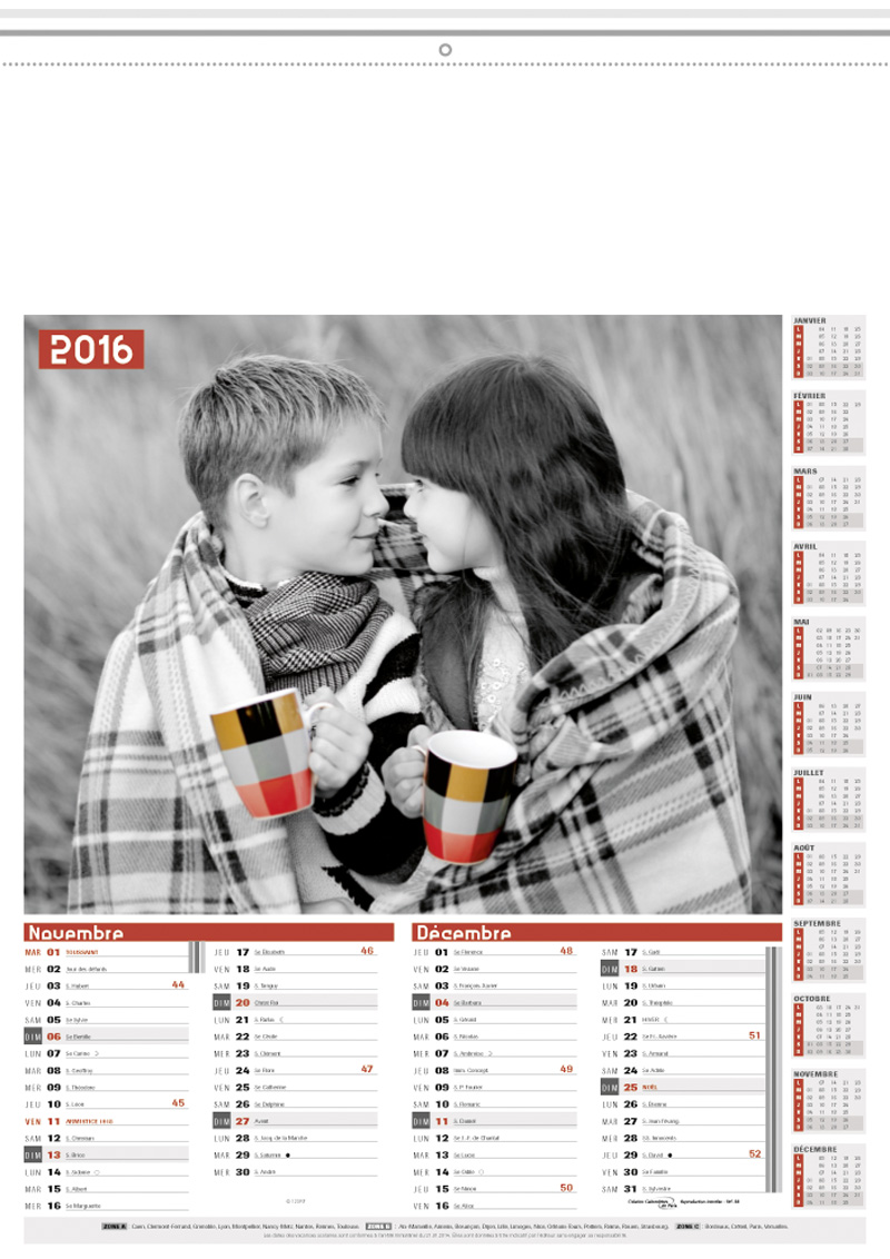 Entreprises, séduisez vos clients en leur offrant un calendrier en cette nouvelle année. Kelcom vous accompagne en ce sens avec le calendrier publicitaire photographe, Clichés Kim Anderson. Un espace vous est dédié pour faire de la pub. En l'offrant, vous répandez votre image pour fidéliser vos clients et espérer toucher le grand public. Ils peuvent ainsi découvrir vos activités et services pour faciliter la collaboration. Pour donner plus de force à cet instrument de communication, vous devez l'offrir à des publics différents (collaborateurs, fournisseurs, potentiels clients..). En l'associant aux images d'enfants presqu'amoureux, nous fouettons la sensibilité du public qui est touché par la beauté et l'innocence incarnées par ce couple. Ainsi, il est difficile de résister à ces feuillets couchés brillant sur lesquels votre image est imprimée. De plus, on éprouve un intérêt à les regarder régulièrement car ils mentionnent les dates, les fêtes, les semaines, les lunaisons et congés scolaires pour une bonne planification des activités des usagers. C'est également un plus à la décoration murale en raison de la beauté des différentes images. Avec un outil pareil, consolidez votre portefeuille clients pour vous affirmer comme leader. Pour tout besoin contactez-nous et passez votre commande.