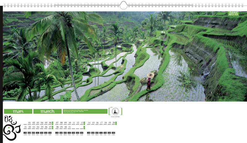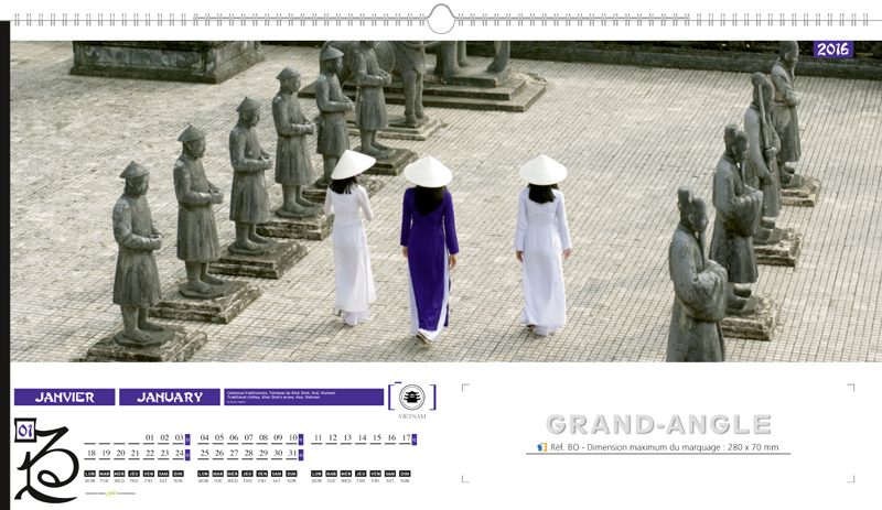 Expérimentez la communication par l'objet pour vous démarquer de vos concurrents. C'est un excellent moyen pour répandre votre image sur le marché sans dépenser de grands moyens. Offrez un calendrier à vos collaborateurs, partenaires et clients pour vous rapprocher d'eux afin de les fidéliser. Ainsi, ils vous feront connaître auprès des autres consommateurs. Nos solutions garantissent votre succès car nous mettons tout en oeuvre pour que nos produits soient captivants. Imprimez vos marques sur le calendrier publicitaire grand angle, Panorama, conçu sur papier couché mat 200 g. C'est un ensemble de 12 à 13 feuillets reliés par une spirale blanche avec carton de fond. Chaque feuillet offre une vue panoramique pour donner envie aux bénéficiaires du calendrier de l'accrocher dans leur maison ou bureau. Il leur permet de prendre des notes pour mieux planifier leurs activités. Un espace est réservé pour faire publicité (prestations, produits, services, contacts, situation géographique). Avec Kelcom, répandez votre image sur le marché pour gagner en notoriété. Contactez-nous sans attendre, vos projets plucitaires connaîtront du succès. Nous donnerons une autre impulsion à vos affaires pour accroître votre chiffre d'affaires. Faites nous confiance.
