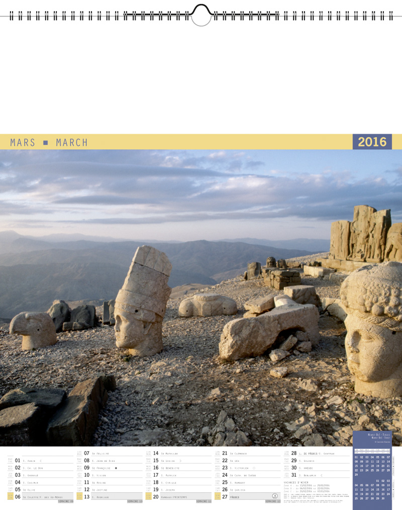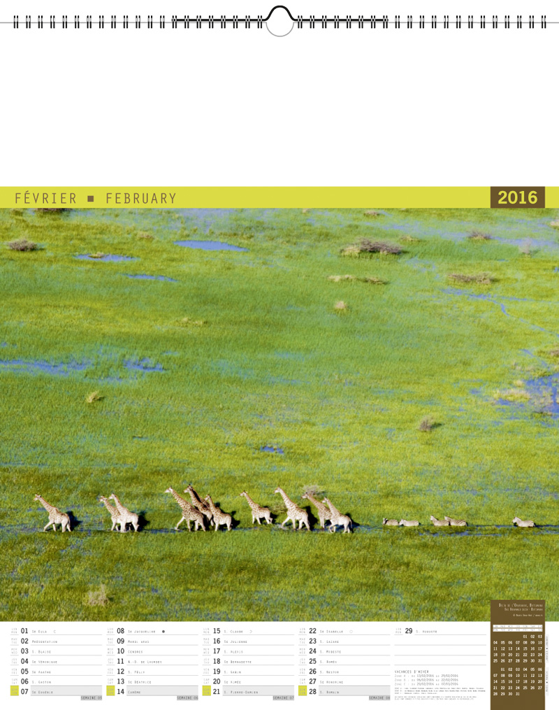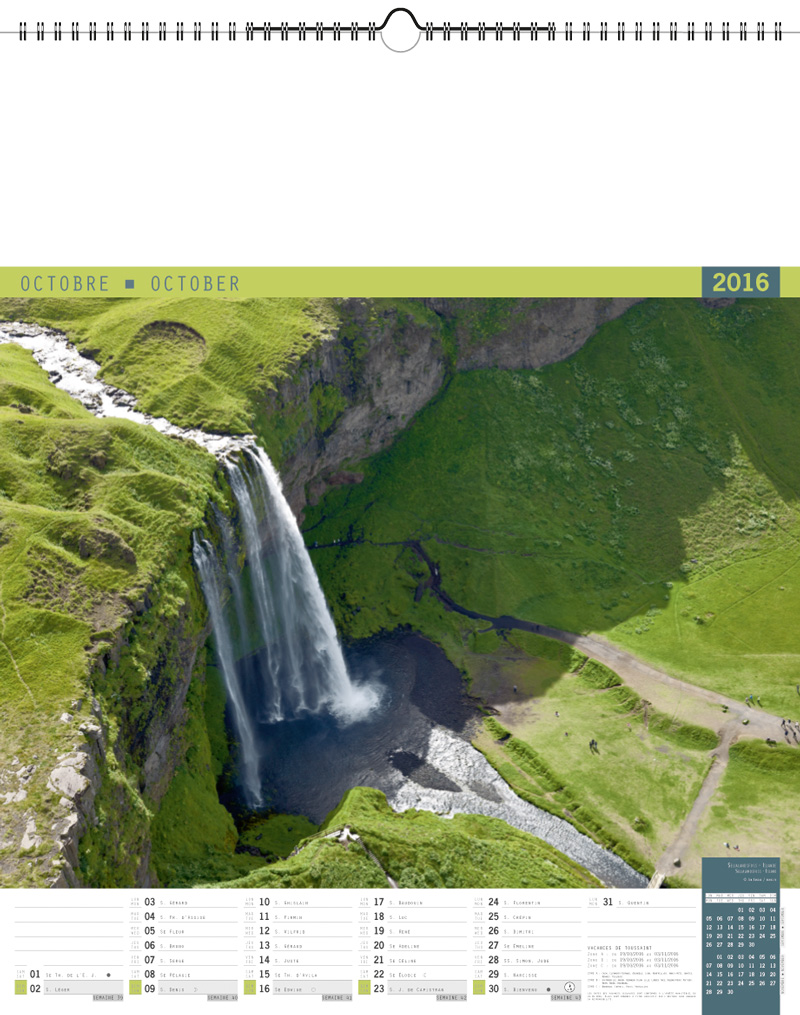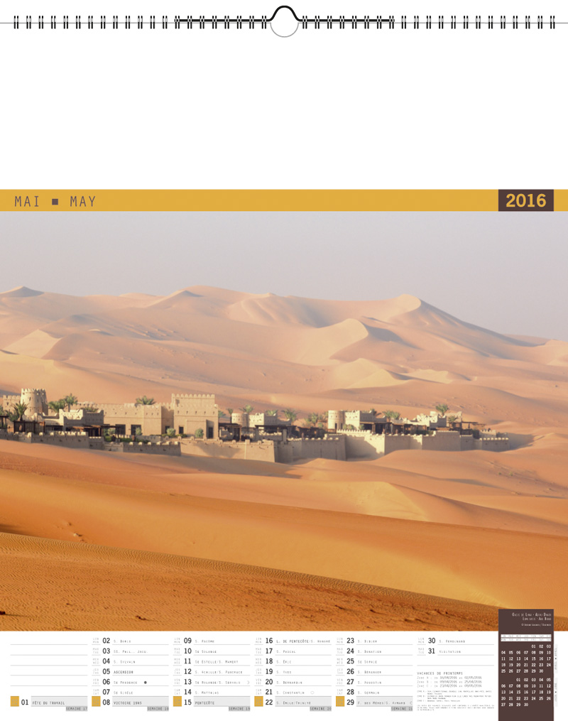 Plusieurs moyens sont disponibles pour faire évoluer votre entreprise. Parmi ceux-ci, se trouve les calendriers illustrés publicitaires, Paysages du Monde de Kelcom. Offrez-les à vos clients et collaborateurs pour les fidéliser. C'est un moyen efficace pour augmenter votre popularité et avoir une longueur d'avance sur vos concurrents. Ce calendrier mérite son non Paysage du Monde. Il présente 12 belles images qui relatent quelques activités des peuples du monde. Les dates en français et en anglais sont affichées au bas de chaque image, ils permettent aux utilisateurs de gérer efficacement leurs programmes et de marquer leur rendez-vous. Un espace vous est réservé pour faire votre publicité. Vous pourrez y présenter vos prestations, votre situation géographique ou donner plus de détails sur vos produits. Paysages du Monde offre de belles couleurs pour apporter une touche spéciale à la décoration murale. N'hésitez pas à le prendre comme support publicitaire, vos clients seront ravis de le recevoir. Kelcom se rend disponible pour tous vos projets publicitaires et autres communications de masse. Pour booster votre visibilité, contactez-nous. Nous vous offrirons des supports ajustés à vos besoins. Vous pouvez compter sur nous. A vous de jouer !
