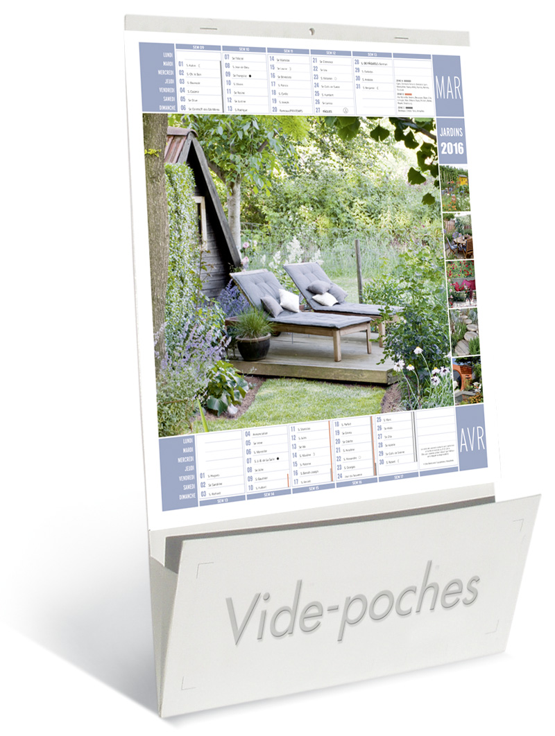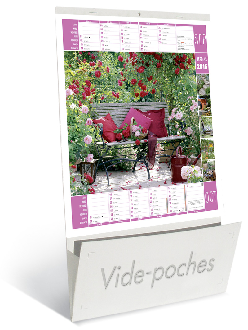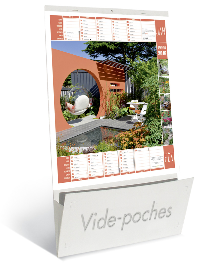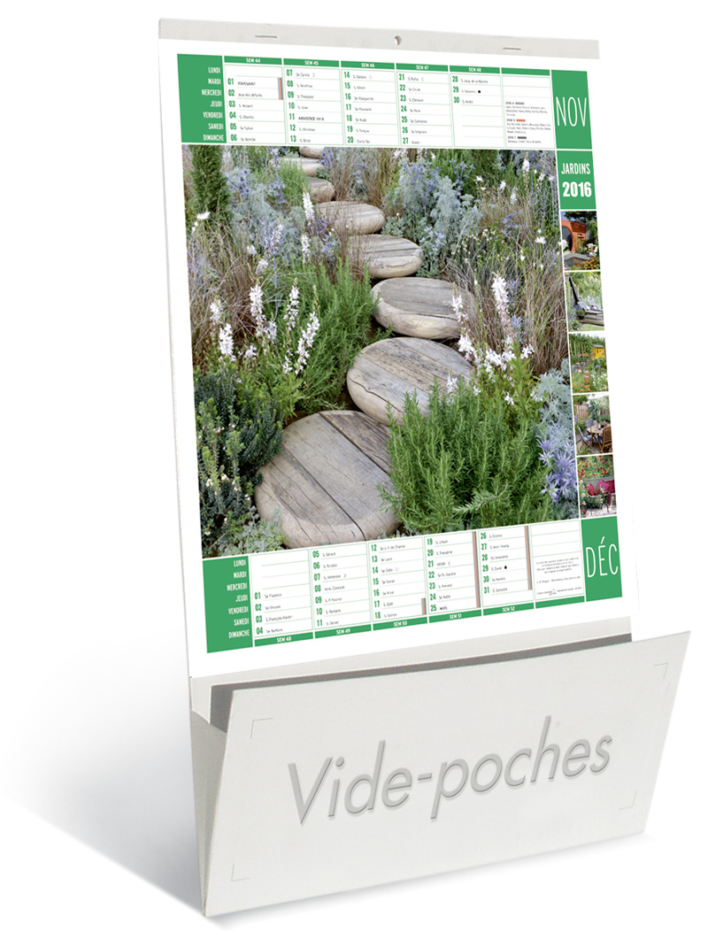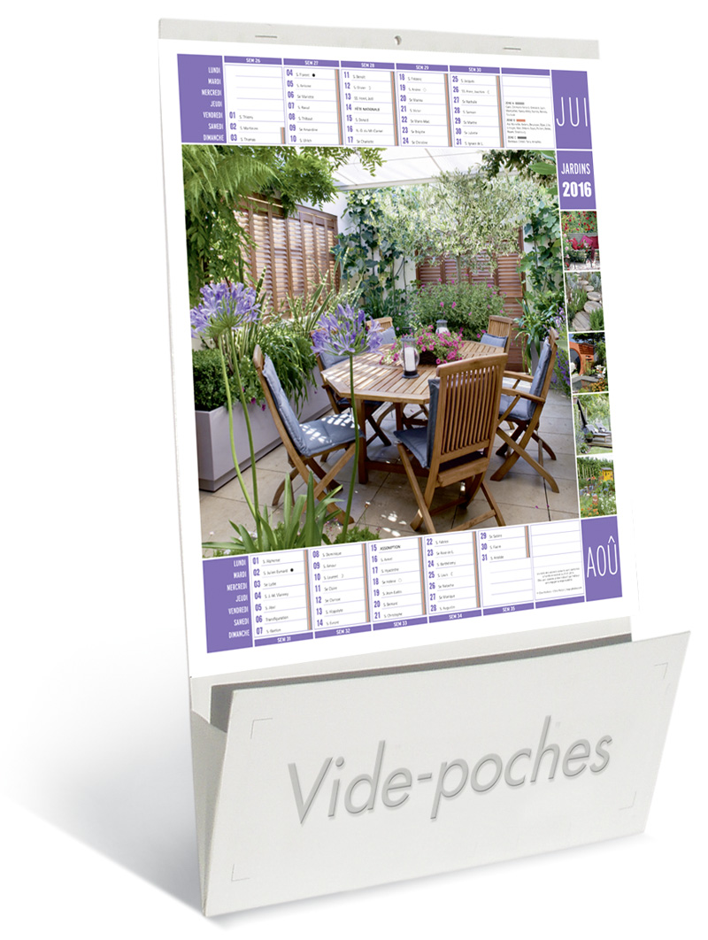 Un beau calendrier offert à vos clients vous permettra d'obtenir leur sympathie. Offrez le calendrier publicitaire jardin de Kelcom à vos partenaires et clients pour les accrocher à vos produits. Il est Illustré par de beaux jardins qui les feront rêver. Il vous permettra d'être prêts d'eux tout au long de l'année. Avec ce calendrier, les utilisateurs peuvent efficacement planifier leur emploi du temps et décorer leur maison. Ils se souviendront de vous chaque fois qu'ils jetteront un regard sur ce support. Notre produit est attractif et possède un solide support en carton contrecollé de 1020g sur lequel sont agrafés ses 6 feuillets en papier couché brillant. C'est un calendrier bien imprimé oû les impressions sont visibles et lisibles mettant en évidence les dates des congés scolaires, des fêtes annuelles et les semaines numérotées. Les annotations personnelles sont possibles car des espaces sont prévues à côté des dates. Il est facile à accrocher à un support grâce à son trou de suspension. Pour gagner la bataille de la concurrence, communiquez efficacement à travers les outils de communication de Kelcom. N'hésitez pas à nous contacter pour être leader.