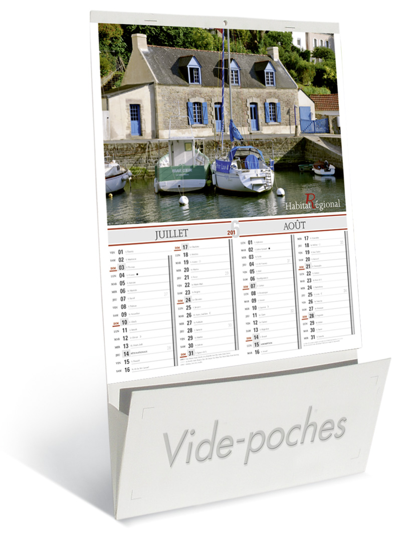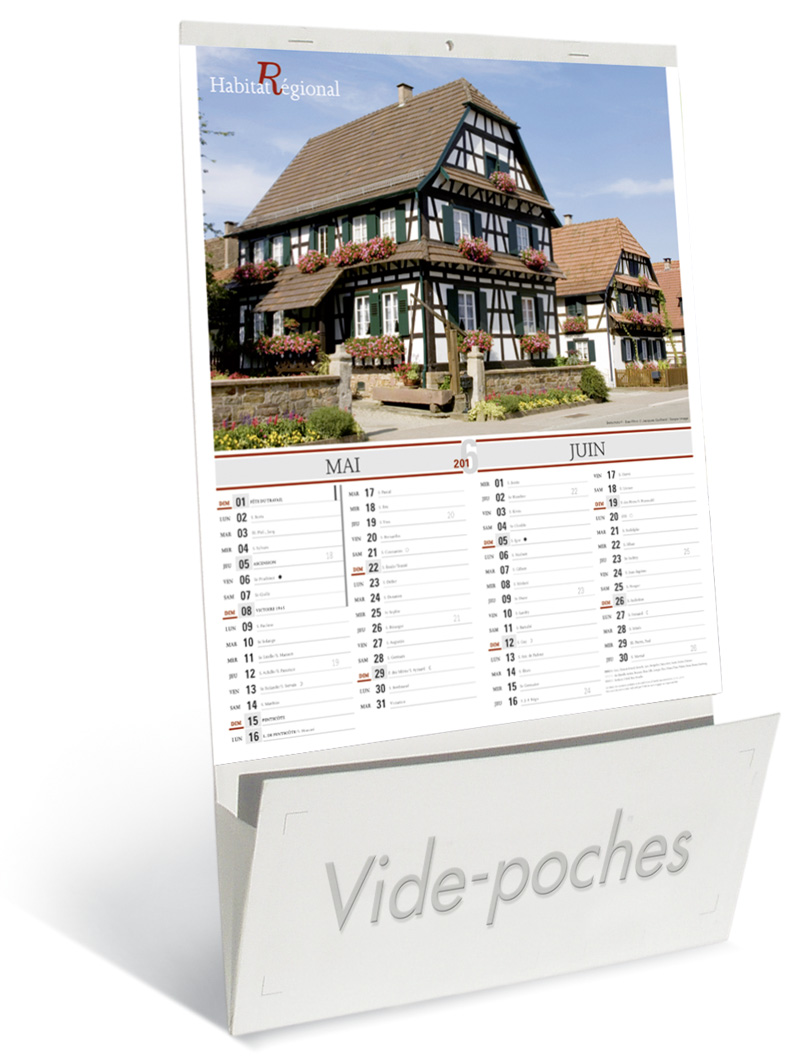 Votre clientèle constitue la prunelle de vos yeux, prenez-en soin pour vous maintenir sur le marché. En ce début d'année, rapprochez-vous de vos clients et collaborateurs avec les calendriers publicitaires maisons, Habitat Région de Kelcom. C'est un support parfait pour vous vendre afin d'occuper une place de choix. Habitat Région un est calendrier bimensuel qui présente des maisons à l'architecture particulière. Témoins de l'histoire et du temps, elles font partie du patrimoine culturel français. Les dates y sont mentionnées avec un net découpage des semaines. On peut donc l'utiliser aisément pour établir son programme, ficeler son agenda et se situer dans le temps. Profitez de l'espace qui vous est réservé pour booster votre visibilité. Il vous sera utile pour votre propre publicité car vous pourrez y mentionner vos contacts, votre situation géographique et vos. De plus, il peut servir comme objet de décoration afin d'égailler votre maison ou bureau. Avec un tel gadget, vous ne passerez pas inaperçus et vos clients seront ravis de les faire connaître aux autres. Contactez-nous si vous voulez optimiser vos gains. Nous vous livrerons des supports de qualité pour une meilleure communication avec vos clients.