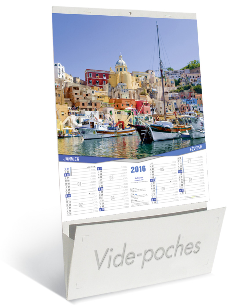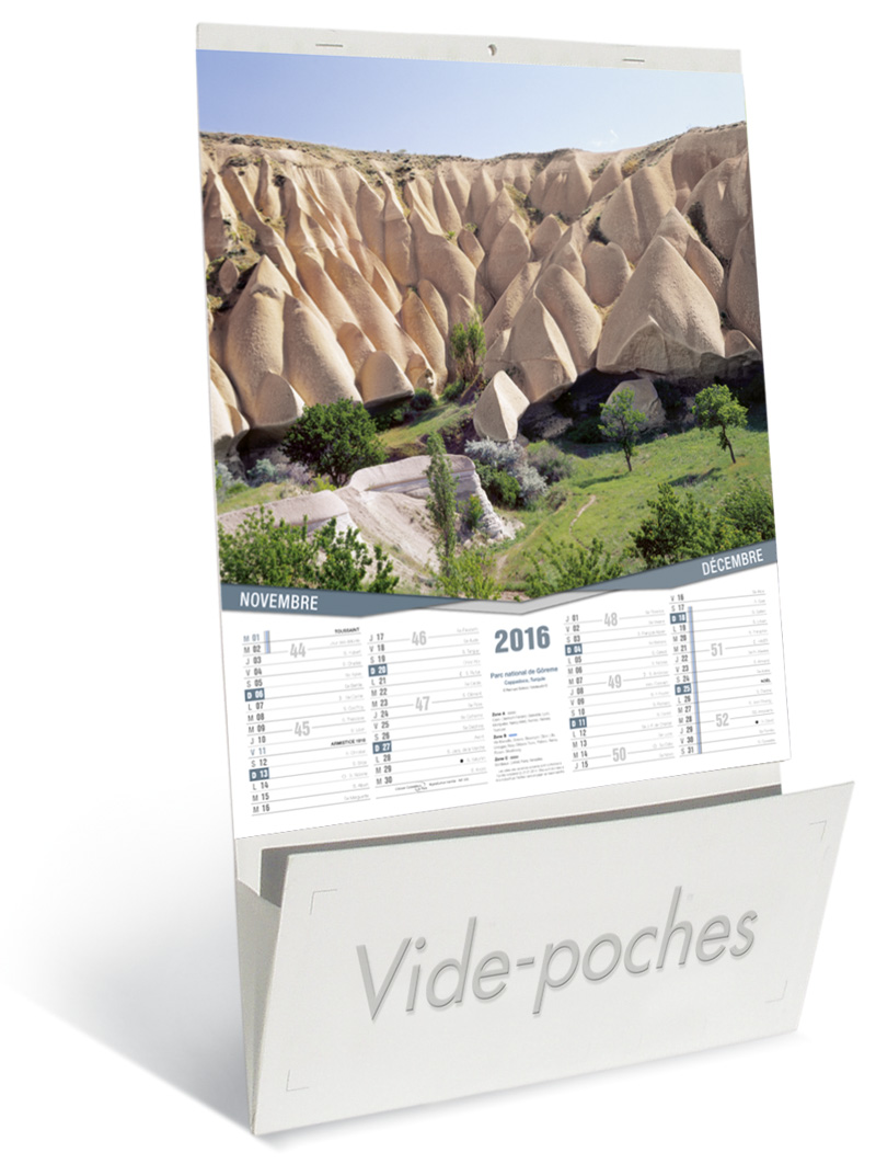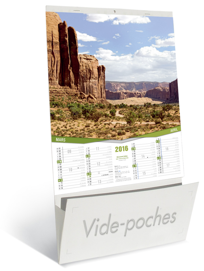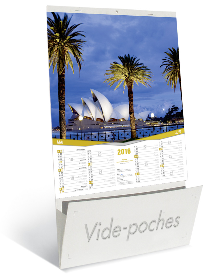 Trouvez l'occasion de vous rapprocher de vos clients et vous faire mieux connaître en adoptant les solutions de Kelcom, le spécialiste de la communication par l'objet. Nous vous proposons d'offrir un calendrier publicitaire à vos collaborateurs, partenaires et clients. En l'accrochant dans leurs foyers et bureaux, ils répandent votre image pour vous faire connaître du public. Vous fidélisez vos clients, vous atteignez de nouvelles cibles et conquérez de nouveaux clients. C'est un excellent outil de communication car il est simple, pratique et efficace. Pour lui donner toute sa force, Kelcom met l'accent sur la qualité et la beauté de ses supports. Le calendrier publicitaire vide poche, Vues du Monde est fabriqué à partir de carton contrecollé avec poche à soufflets. Il est composé de 6 feuillets en papier couché brillant qui comportent chacun 2 mois consécutifs. En plus, vous y trouverez de belles images tirées des sites et monuments du monde pour le rendre plus agréable à regarder. Pour les utilisateurs, c'est un complément à la décoration murale et un complice pour mieux planifier leurs activités. En associant votre image à ce calendrier, rendez-le davantage attractif pour booster vos affaires. Pour tout besoin, n'hésitez pas à nous contacter. Nous vous aiderons à fructifier vos affaires.