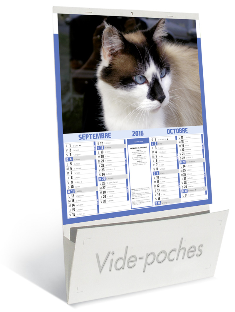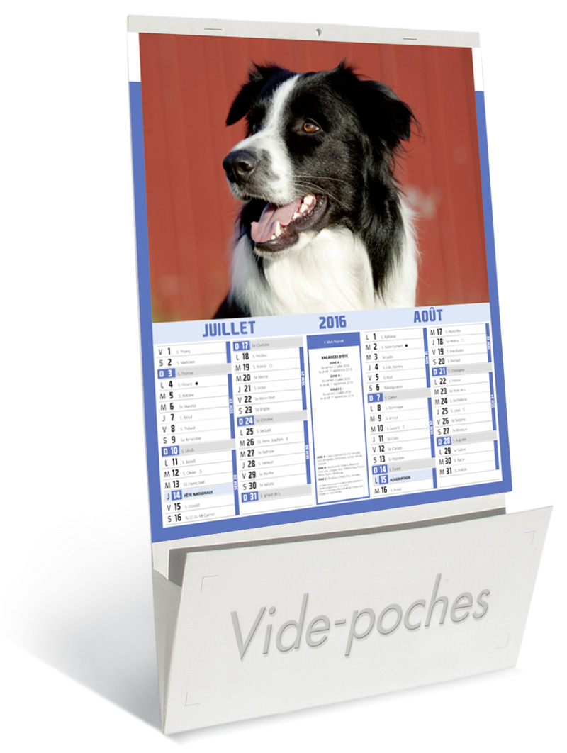 Entreprises, trouvez un moyen original de vous faire connaître du grand public grâce à Kelcom, votre partenaire en communication. Nous vous proposons les calendriers publicitaires vide poches chats et chiens. C'est un excellent support pour optimiser votre chiffre d'affaires. Offrez-les à votre clientèle afin de lui renouveler votre attachement. Elle fera votre publicité auprès des autres consommateurs. Chats et Chiens sont des calendriers qui présentent de belles images de vos animaux de compagnie. Les dates sont disposées de sorte à faciliter son utilisation. Vos clients s'en serviront pour établir aisément leurs différents programmes, peaufiner leur agenda. De plus, il est doté d'un vide poche qui vous aidera à conserver vos petites notes. Un espace vous est réservé pour votre publicité. Saisissez l'opportunité de présenter vos différents produits, donner vos coordonnées et situation géographique. En dehors de son rôle premier, ce support publicitaire peut servir à décorer les maisons et bureaux des utilisateurs. Pour toutes vos campagnes publicitaires, ayez le reflexe de contacter Kelcom. Nous vous fourniront des produits de qualité car nous avons de l'expertise et de l'expérience. Faites nous confiance, vous gagnerez en notoriété.