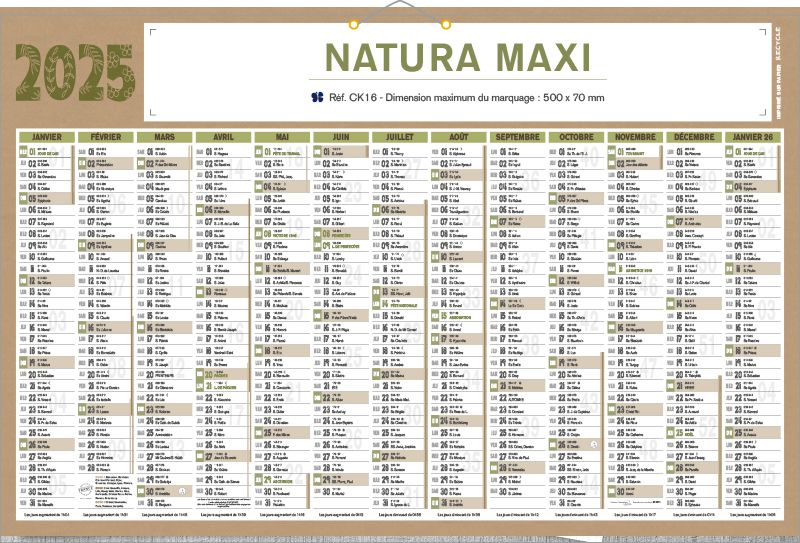 Vous aimeriez personnaliser encore davantage ce calendrier publicitaire Natura Maxi ? Notre équipe de graphistes est à votre disposition pour vous accompagner dans la création d'un produit qui vous correspondra à 100%. Ajout de couleurs ou d'un message original : tout est personnalisable ! Alors n'hésitez pas à nous contacter.