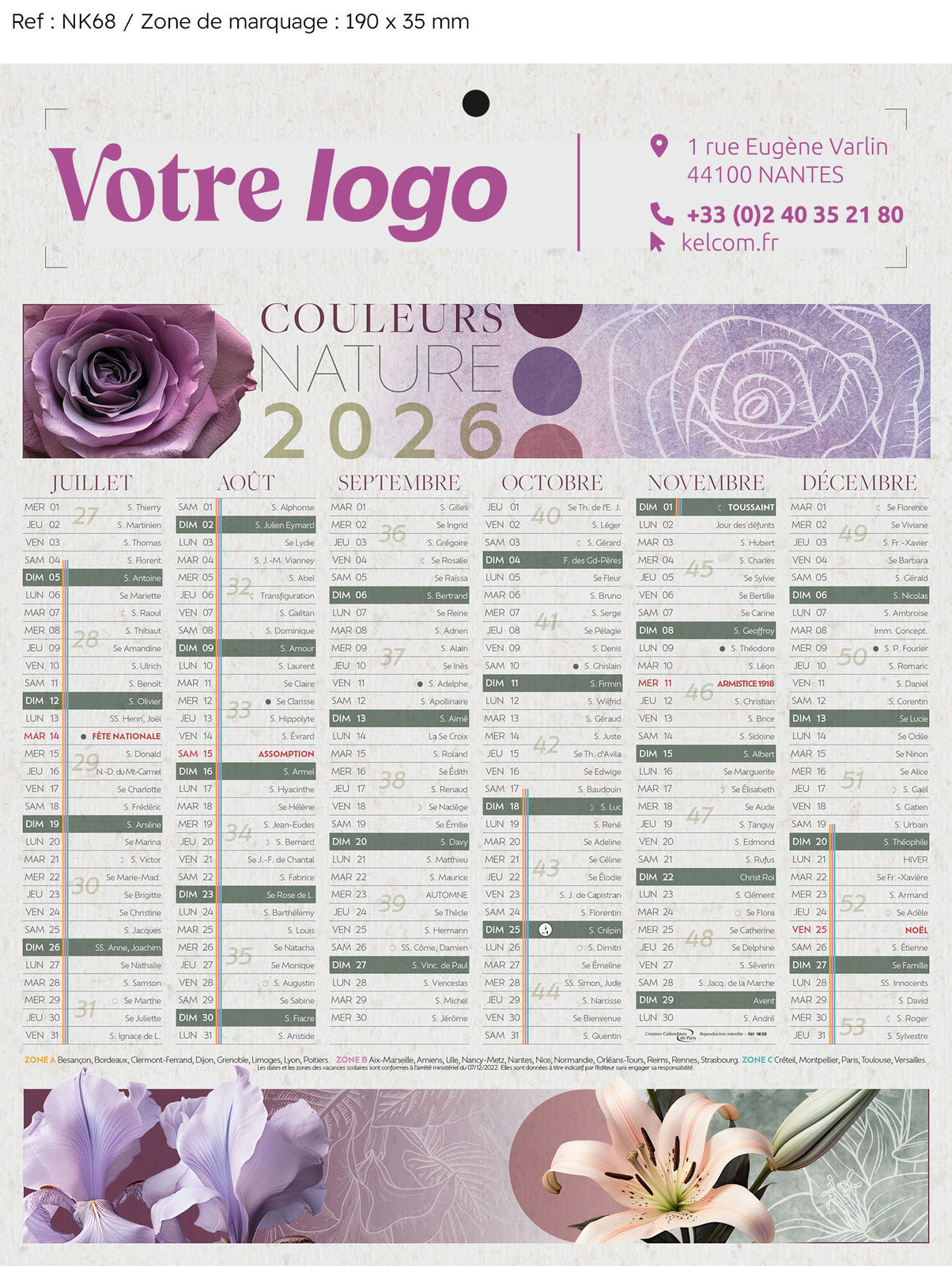 | Calendrier + repiquage Quadri | 3,02€ | 2,58€ | 2,33€ | 2,14€ | 1,94€ | 1,80€ |
