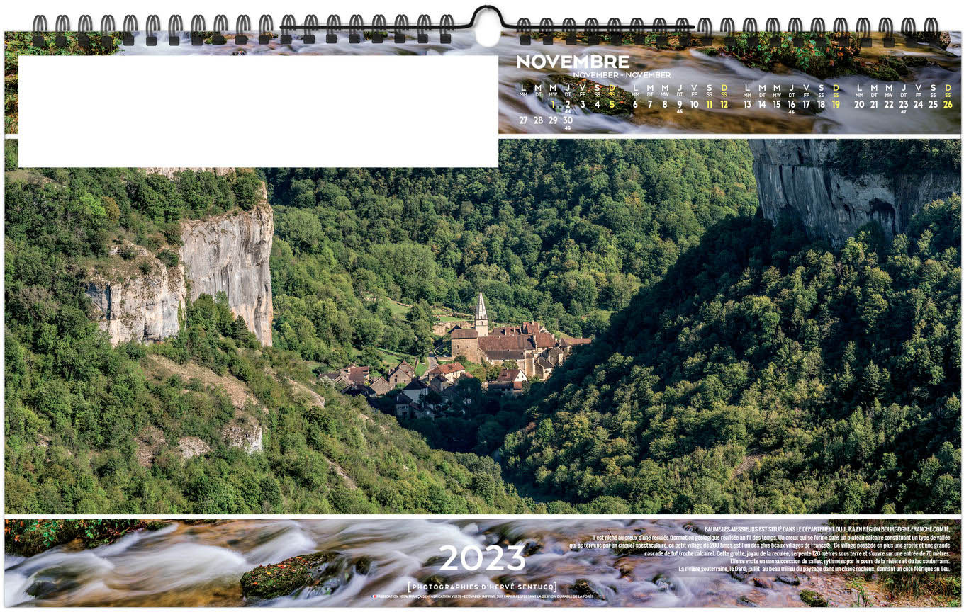Calendrier 2026, 13 feuillets illustrés de photos panoramiques de paysages Français réalisées par Hervé Sentucq