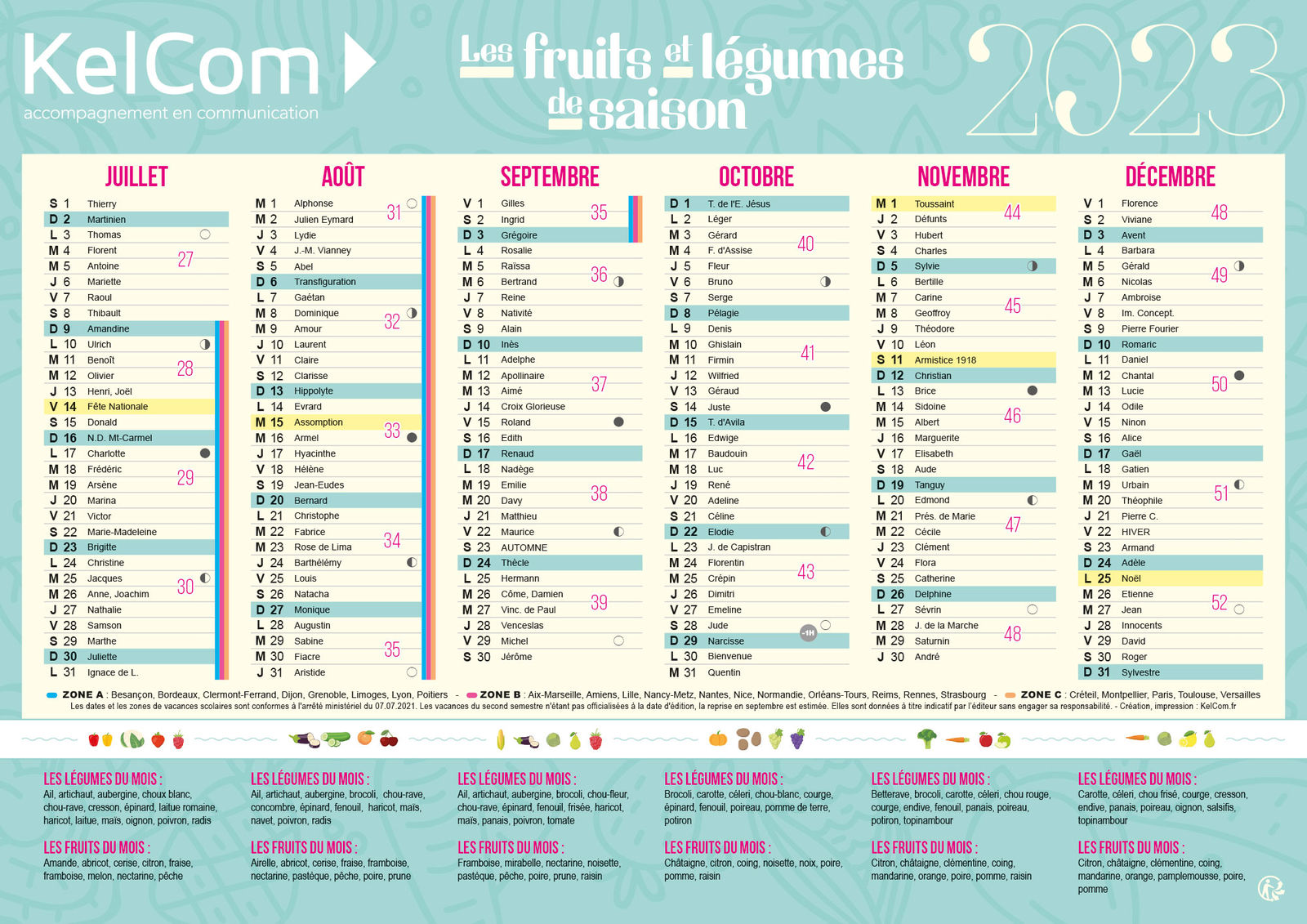KelCom vous propose ce calendrier recto-verso totalement recyclable, sur le thème des fruits et légumes. 6 mois d'un côté, 6 mois de l'autre, avec congés scolaires intégrés : si c'est un classique, ce calendrier fera vite partie des indispensables de bureau de vos collaborateurs !
